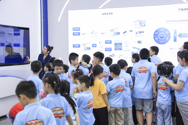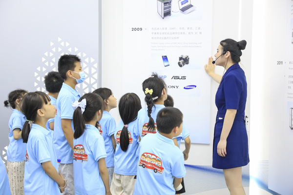 宣傳片觀看結束后,孩子們最期待的展廳探秘環節正式開始。在講解員和志愿者的帶領下,孩子們步入了展廳,沉浸式感受科技的魅力。講解員用生動易懂的語言,結合香港大學志愿者們的實物操作演示,將復雜的鋰電池檢測技術、新能源汽車充電技術講述得妙趣橫生、直白易懂。孩子們興致勃勃,認真聆聽講解。