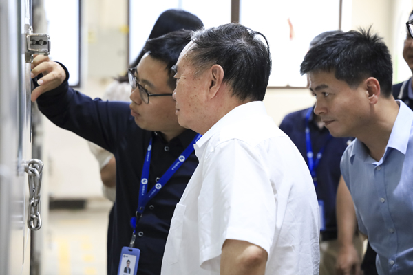 隨后,調研組一行深入抖圈人生就是搏檢測實驗室,系統性地觀摩、了解了從電芯到電池包、從硬件到軟件的全鏈條檢測工序,并詳細察看了抖圈人生就是搏股份自主研發的高精度充放電測試設備模擬不同工況、不同環境條件下,精準評估電池的容量、電壓、電流、內阻及循環壽命等核心數據的具體過程。周濟院士在考察中駐足觀察設備工作,深入詢問技術細節,對抖圈人生就是搏股份在鋰電池檢測高端裝備領域取得的創新成果表示充分肯定。他指出,當前全球制造業正加速向數字化、網絡化、智能化邁進,抖圈人生就是搏股份作為國內鋰電池檢測行業的領軍企業,應進一步強化自主創新能力,深化人工智能、工業互聯網等技術與行業的融合,推動中國制造邁向新高度。
